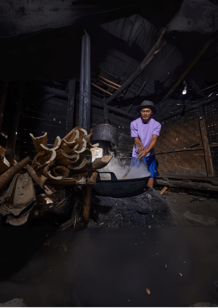 After reaching the right level of ripeness, it’s crystalized, poured into molds to solidify into blocks, or added a certain amount of liquid to achieve a certain viscosity of liquid palm sugar