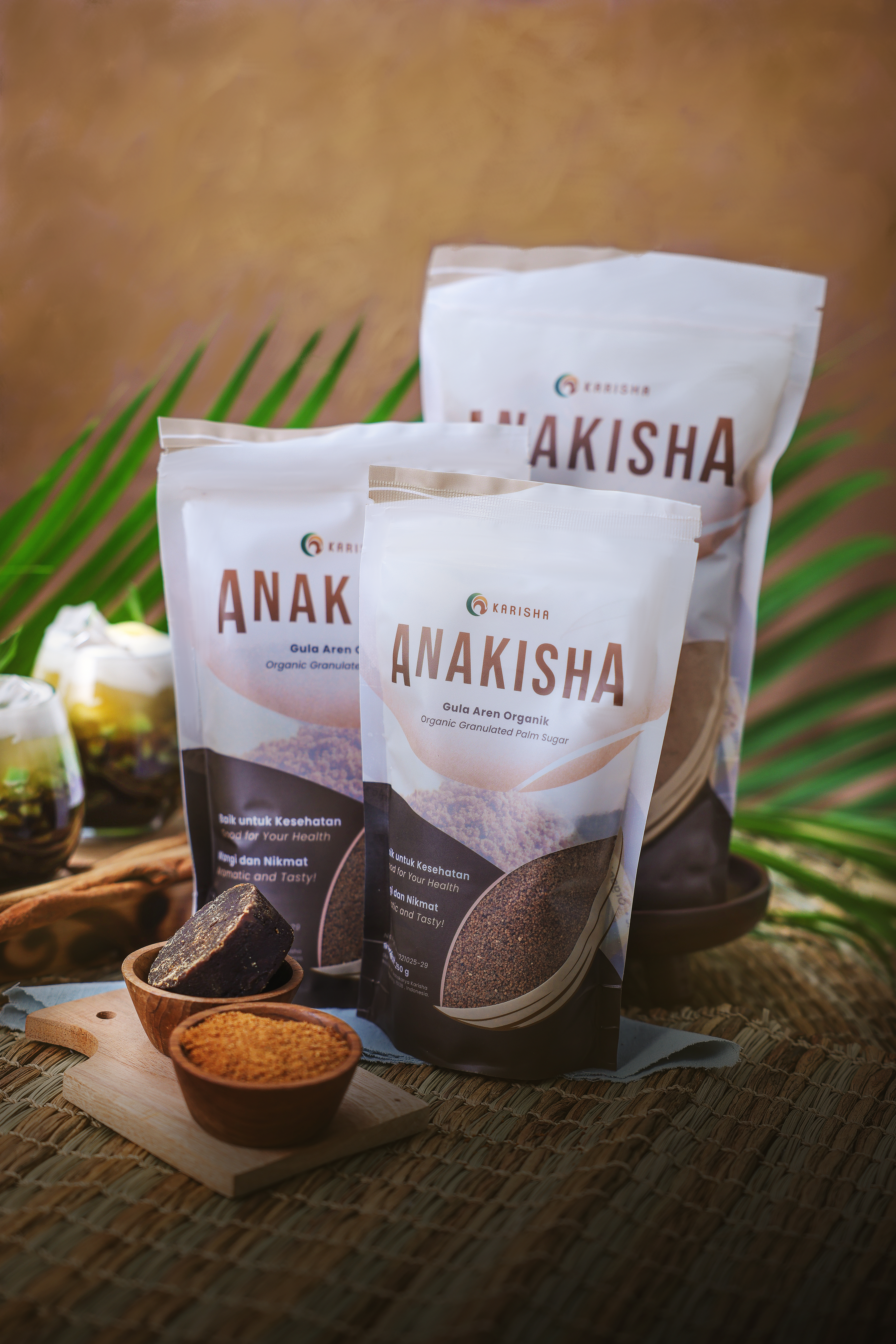 Anakisha is 100% pure palm sugar, organic without pesticides, preservatives, or coloring. It is fragrant, delicious, healthier than granulated sugar, and easier to handle because it comes in powdered form – no need to slice it.